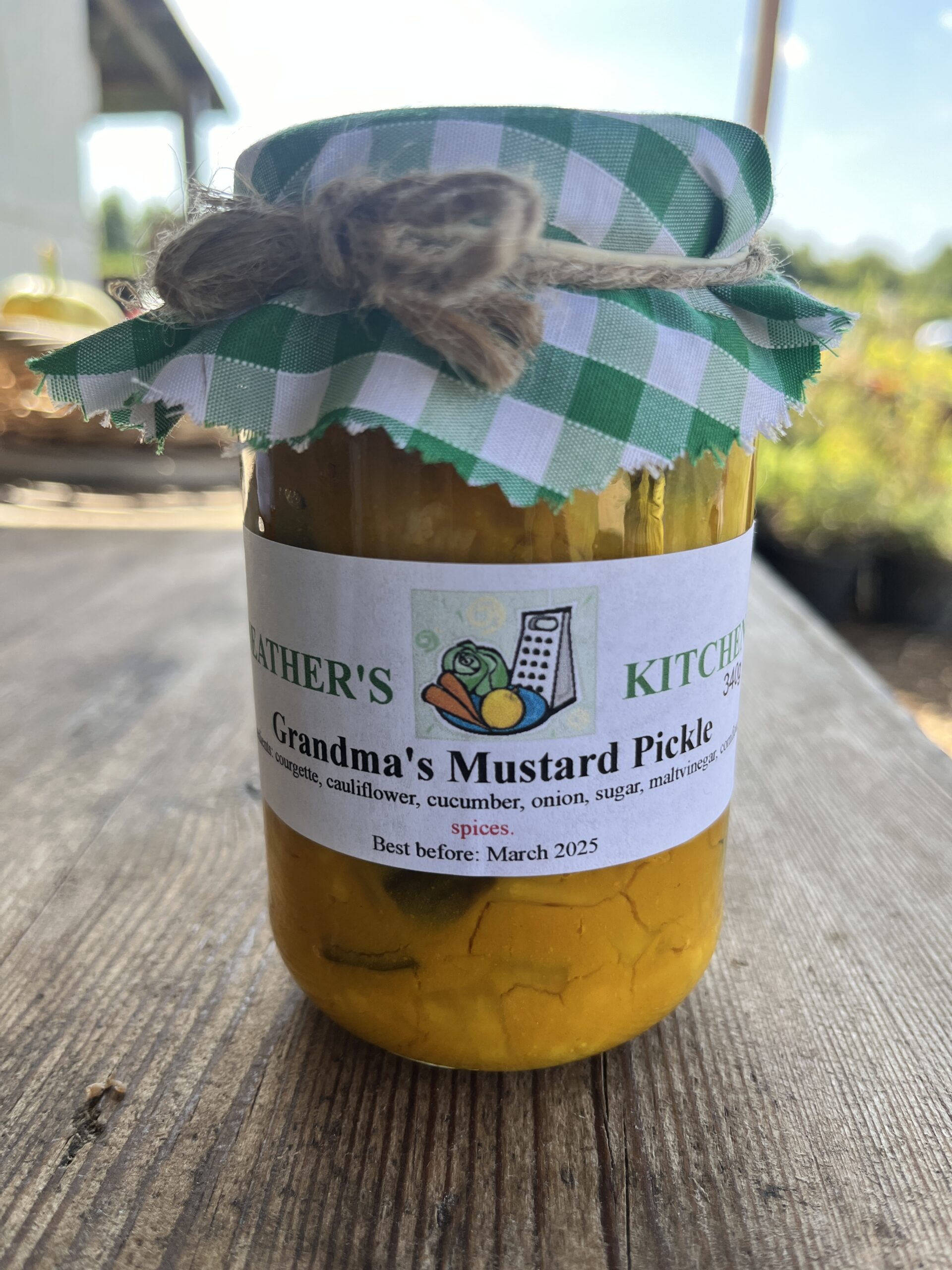 - Premium Ingredients: Made with fresh vegetables, tangy vinegar, and a robust blend of spices, Heather's Kitchen Grandma's Mustard Pickle is crafted with the finest ingredients. Each jar is packed with crunchy pieces of cauliflower, onions, marrow and cucumber, ensuring a burst of flavour and texture in every bite.
